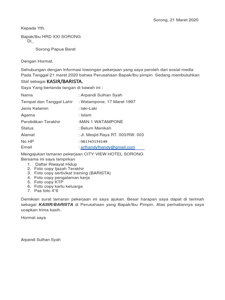 Download Download Contoh Surat Lamaran Kerja Di Cafe Xxi